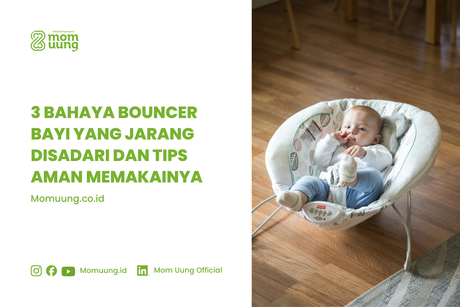 Momuung.co.id – Menjadi ibu baru sering membuat Mommy mencari alat bantu agar bisa punya waktu sebentar untuk mandi atau makan dengan tenang. Bouncer bayi pun sering jadi pilihan karena bentuknya nyaman dan gerakannya bisa menenangkan si Kecil.