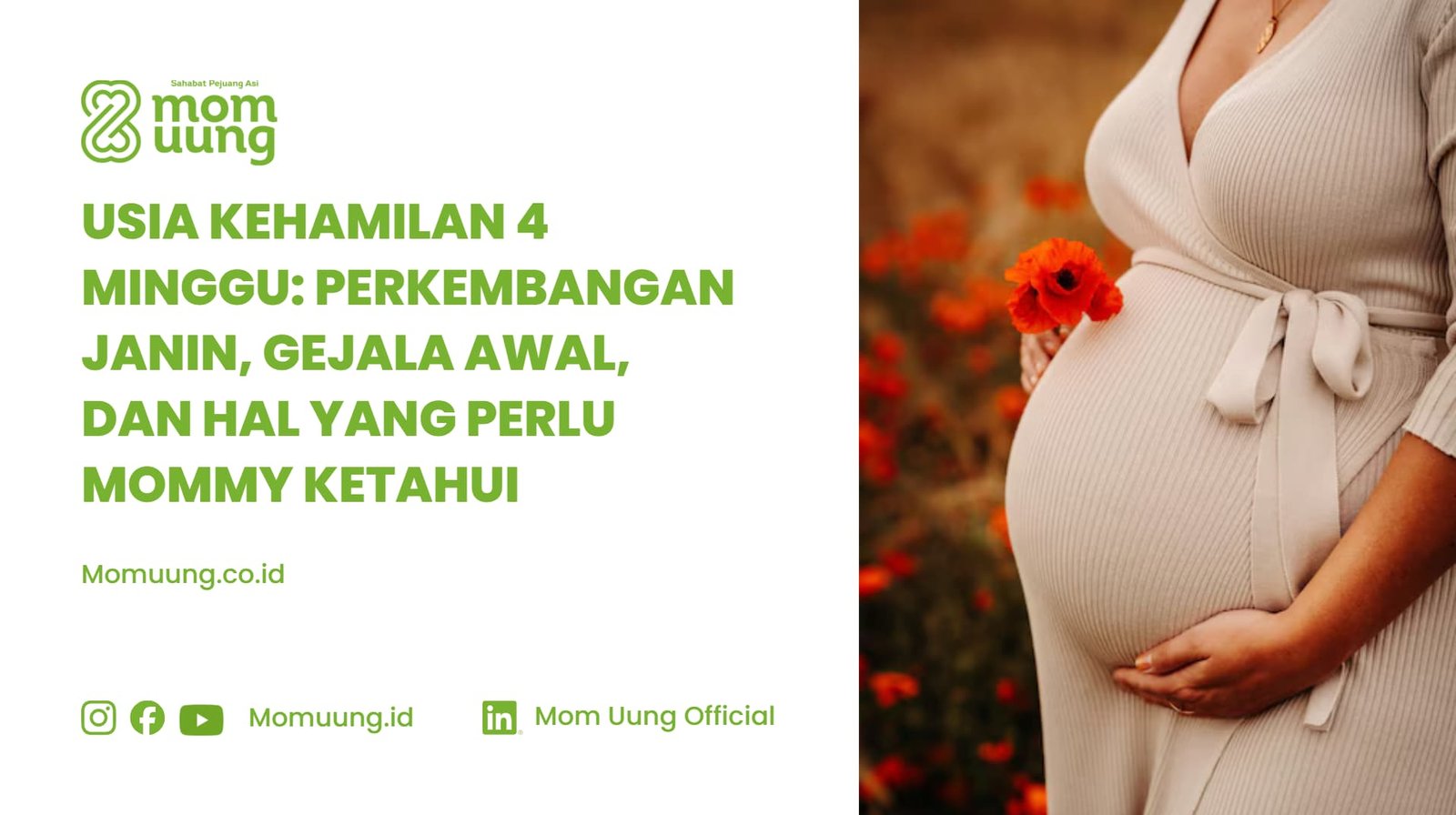 Usia kehamilan 4 minggu merupakan tahap awal perkembangan embrio di dalam rahim. Pada fase ini ukuran janin masih sangat kecil, namun proses pembentukan jaringan dan organ sudah mulai berlangsung. Beberapa Mommy mulai merasakan gejala seperti telat haid, payudara sensitif, atau mual ringan. Test pack biasanya sudah dapat mendeteksi hormon kehamilan pada usia ini. Menjaga nutrisi seperti asam folat, zat besi, dan vitamin prenatal sangat penting untuk mendukung perkembangan janin pada awal kehamilan.